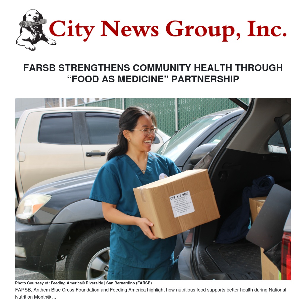 Riverside, CA – March 17th, 2026 – Food is a powerful tool for better health, especially as people facing hunger experience higher rates of chronic illness and higher health care costs. During National Nutrition Month in March®, Feeding America Riverside | San Bernardino (FARSB) is joining the Anthem Blue Cross Foundation, an affiliated arm of the Elevance Health Foundation, and Feeding America to highlight how health starts with what’s on your plate.