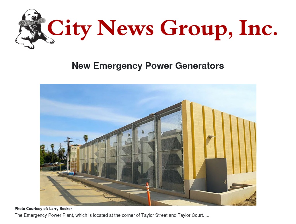 New Emergency Power Generators by Larry Becker - City News Group, Inc.