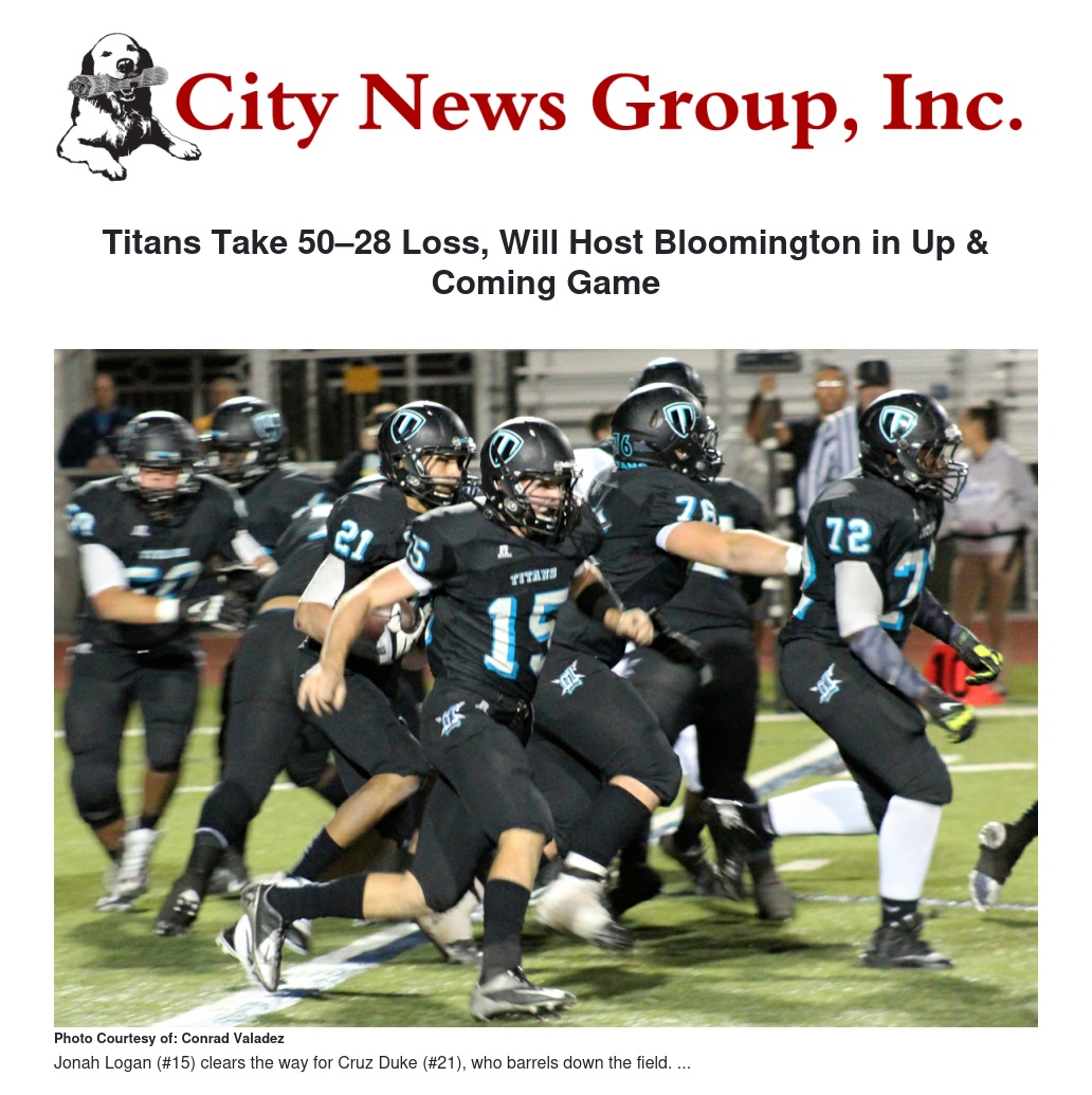 The Titans are on to Sunkist League play, with the first of five games beginning this Friday, Oct. 11 against the Bruins of Bloomington High School (BHS). Friday also marks the GTHS second Up & Coming game.