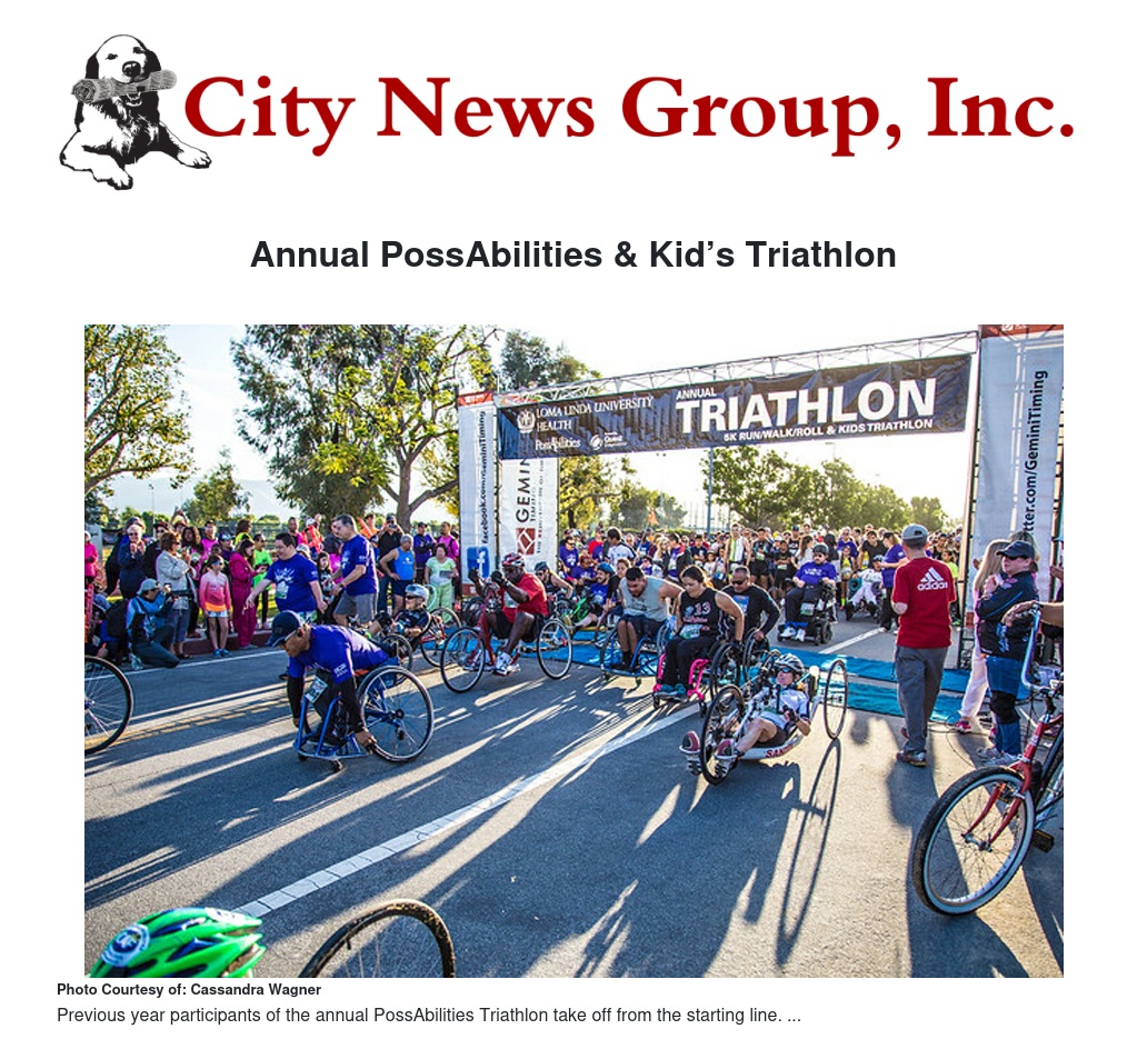 Community athletes of all abilities and ages are invited to participate in the 17th annual PossAbilities & Kids Triathlon on Sunday, April 28, at Loma Linda University Drayson Center, 25040 Stewart Street in Loma Linda.