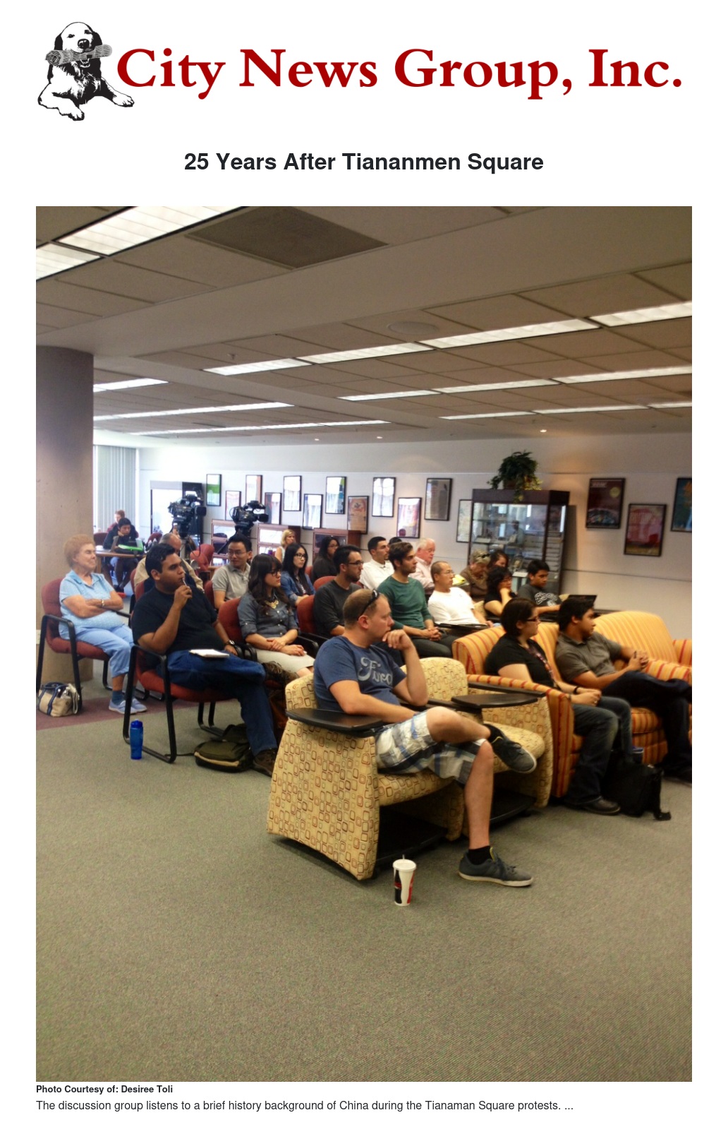 On the 25th anniversary of what some call the Tiananmen Square Massacre, Cal State San Bernardino hosted the “Twenty-five Years After Tiananmen Square: A CSUSB Campus and Community Conversation.” Students and faculty gathered at the Cal State San Bernardino John M. Pfau Library on the events anniversary.