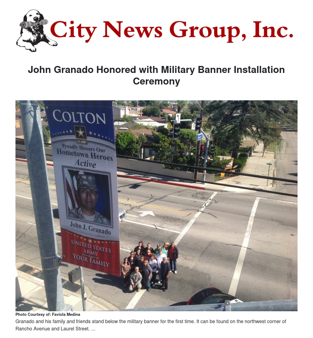 The location of Granado’s banner is sentimental to Granado and his family. According to Granado-Smith, the banner is located on the northwest corner of Rancho Avenue and Laurel Street, by his grandmother’s house. “(John) spent his early years and most of his childhood there. It was where he was brought up - the perfect spot,” she said.