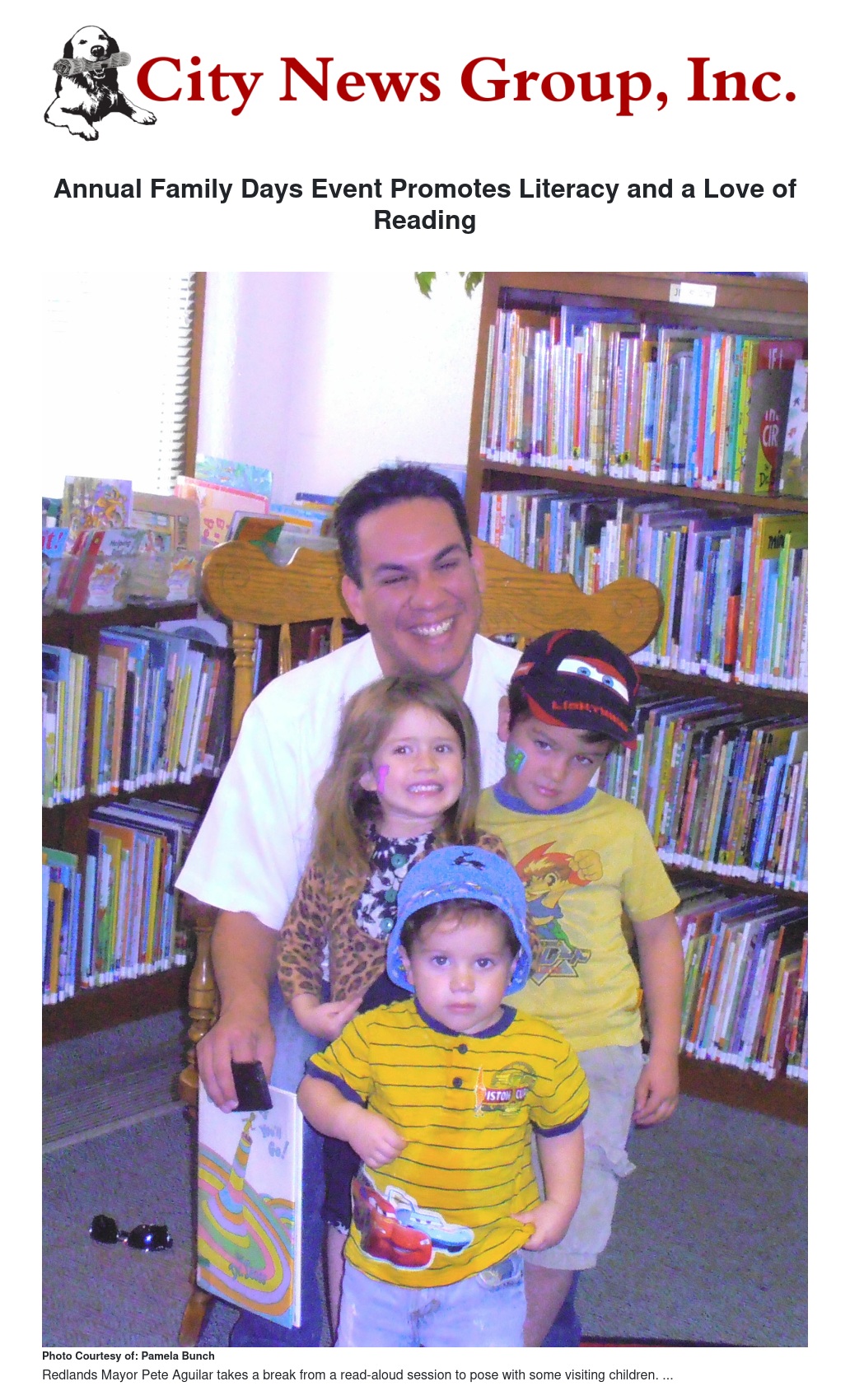 Other activities during the day included the chance to visit with Ben the Therapy Dog, to whom children could read; a gardening area where children made bubbles with members of the Horticulture Club of Redlands; face-painting booths; and read-alouds with members of the Redlands police and fire departments, and other city leaders.
