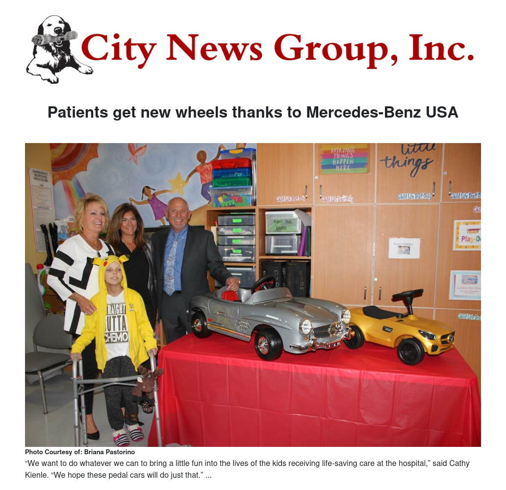 Loma Linda University Children’s Hospital (LLUCH) patients got some new wheels to get them around the hospital when Mercedes-Benz USA, along with Walter’s Automotive Group, delivered three new pedal cars to the hematology/oncology unit, Wednesday, September 20.