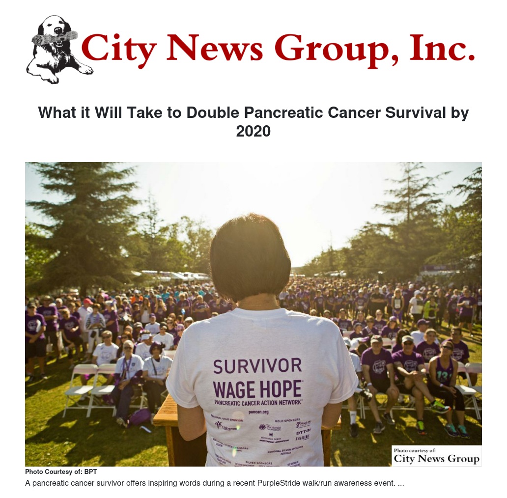 As she underwent her own battle with cancer she learned more about the poor prognosis pancreatic cancer patients face, and she vowed to do everything she could to change those statistics. She started volunteering with the Pancreatic Cancer Action Network, the national organization dedicated to advancing research, supporting patients and creating hope for those affected by pancreatic cancer.