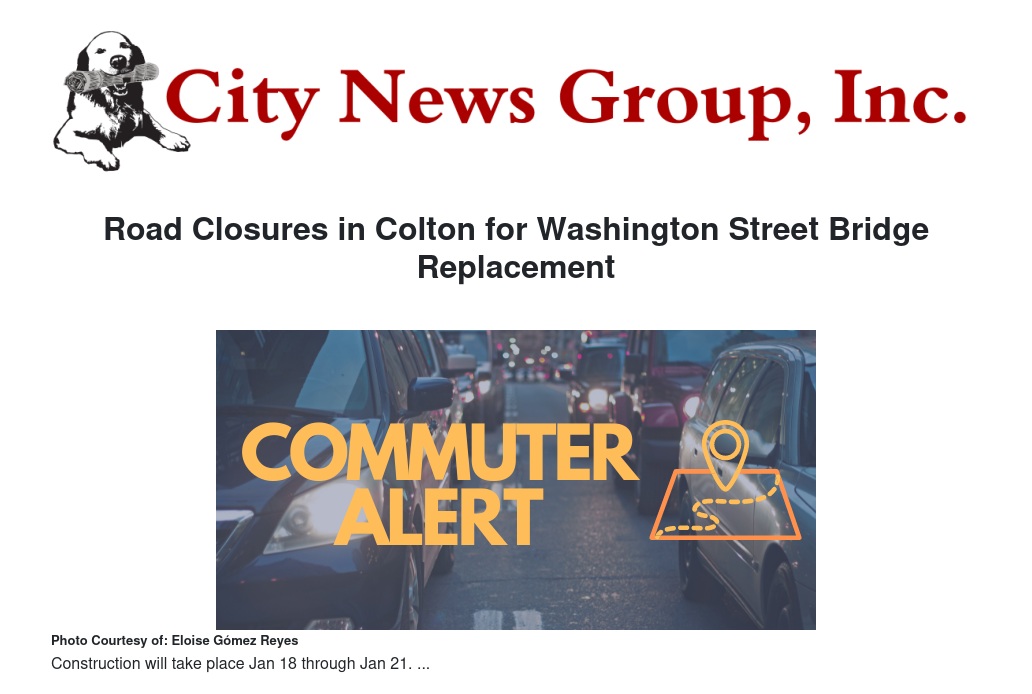 The California Department of Transportation (Caltrans) is alerting the public that construction contractors will be performing bridge demolition work and lane closures on I-215 at the Washington Street Overcrossing in the City of Colton.