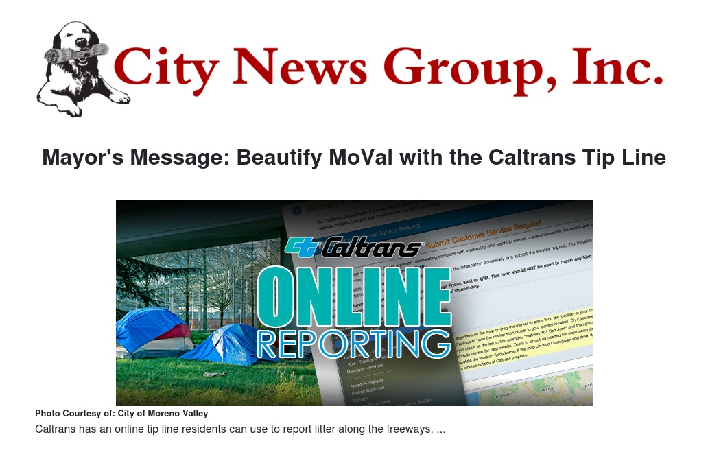 The Caltrans tip line is just one of the many steps we can take to ensure our City stays clean.
