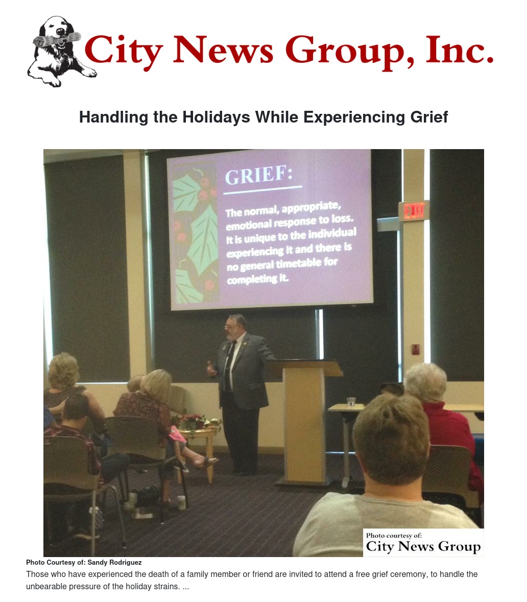 Hospice Chaplain Steve Kay will provide insight on planning for the holidays while grieving, lead a compassionate memorial service and oversee a symbolic dove release.