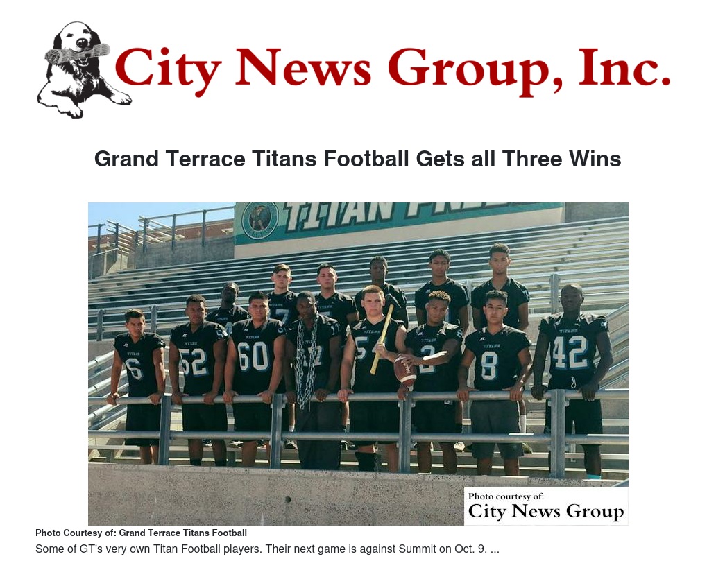 It was a proud week to be a Titan as all three Grand Terrace High School (GTHS) football teams, Freshman, Junior Varsity (JV), and Varsity took home the victory for this non-conference game, beating the Arlington High School Lions this past week.