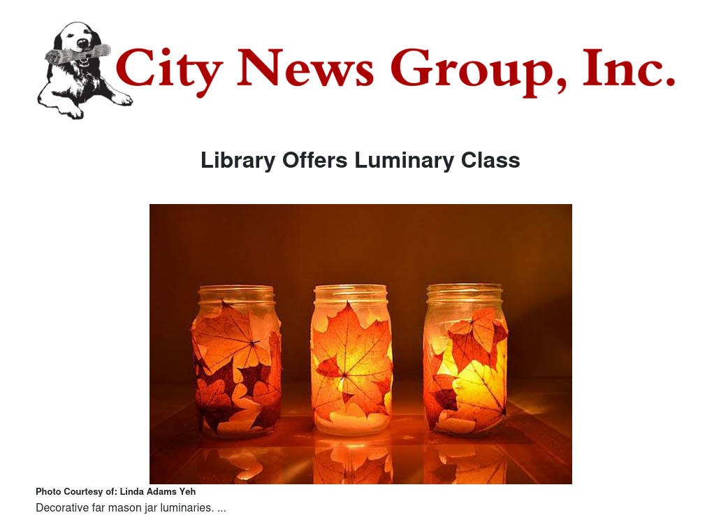 The Feldheym Central Library is offering a craft class for adults. Participants will make Mason Jar Luminaries. This free workshop will be held on Saturday, October 7 at 2:30 PM in the Children’s Room of the Feldheym Central Library at 555 W. Sixth Street. Materials will be provided.