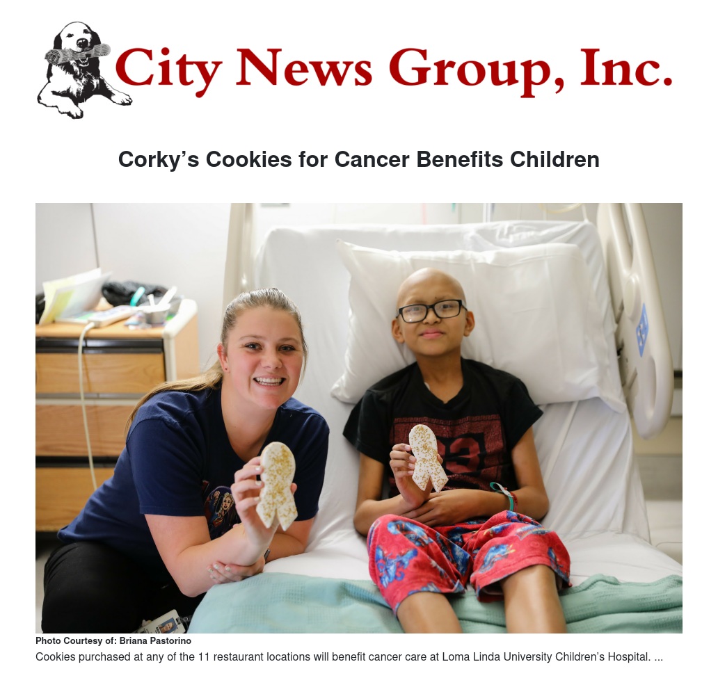 Corky’s Homestyle Kitchen & Bakery kicked off their annual Cookies for Cancer fundraiser this month in honor of Pediatric Cancer Awareness Month. Funds raised during the month-long promotion will benefit Loma Linda University Children’s Hospital.