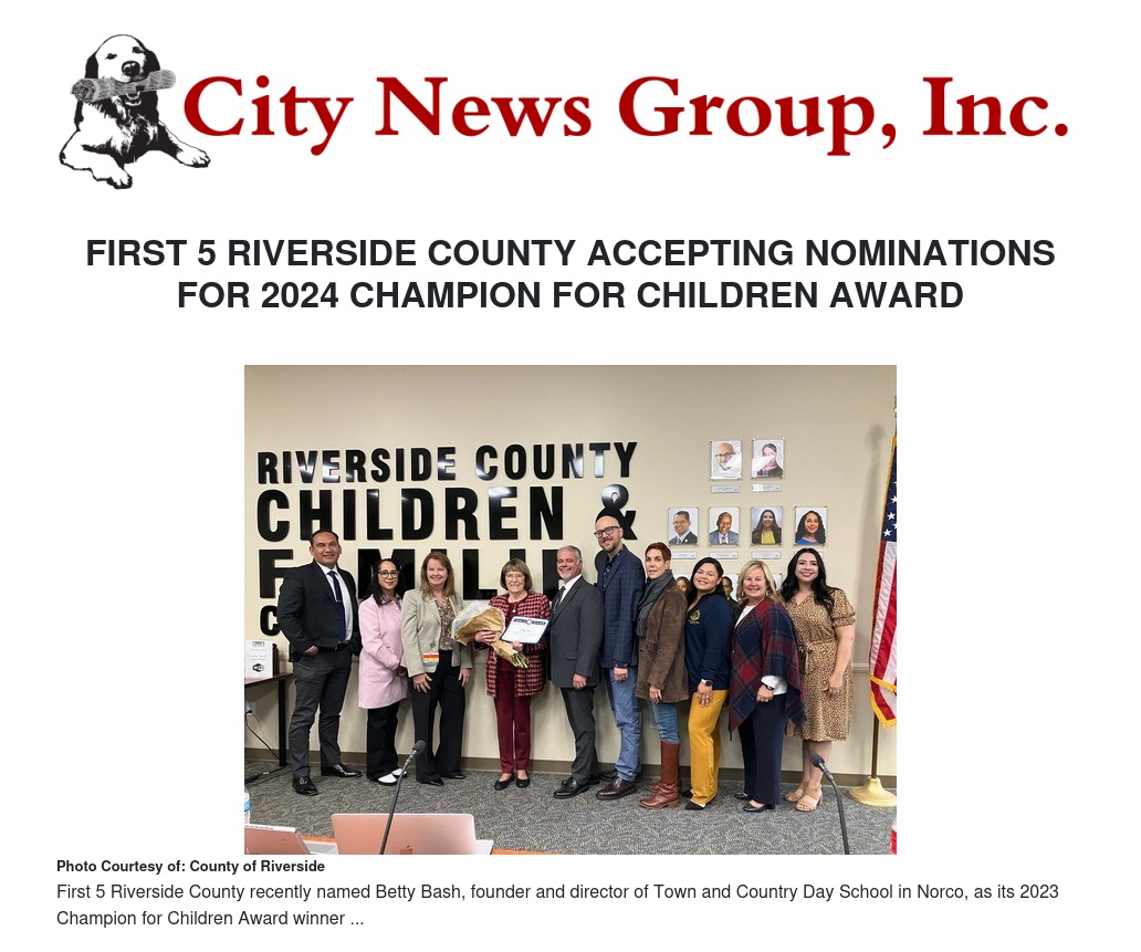- Betty Bash – Founder and Director, Town and Country Day School. Betty is an early education pioneer who founded Town & County in Norco in 1961. Her leadership emphasized quality education for children before California Head Start brought greater recognition to this approach.