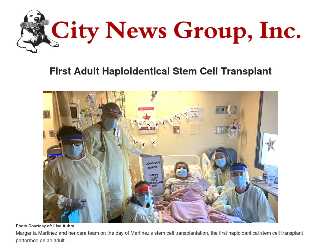Stem cell transplantation not only signaled an end to unexpected ICU trips for 62-year-old Moreno Valley resident, Margarita Martinez, but also marked the first haploidentical stem cell transplant performed on an adult at Loma Linda University Cancer Center.