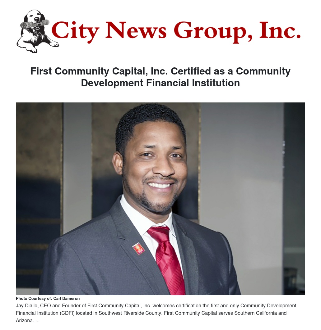 First Community Capital, Inc. Certified as a Community Development Financial Institution by Carl Dameron - City News Group, Inc.