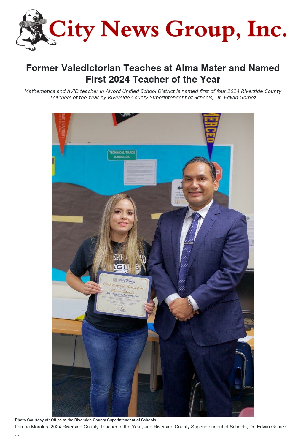 Former Valedictorian Teaches at Alma Mater and Named First 2024 Teacher of the Year by Vivian Johnson - City News Group, Inc.
