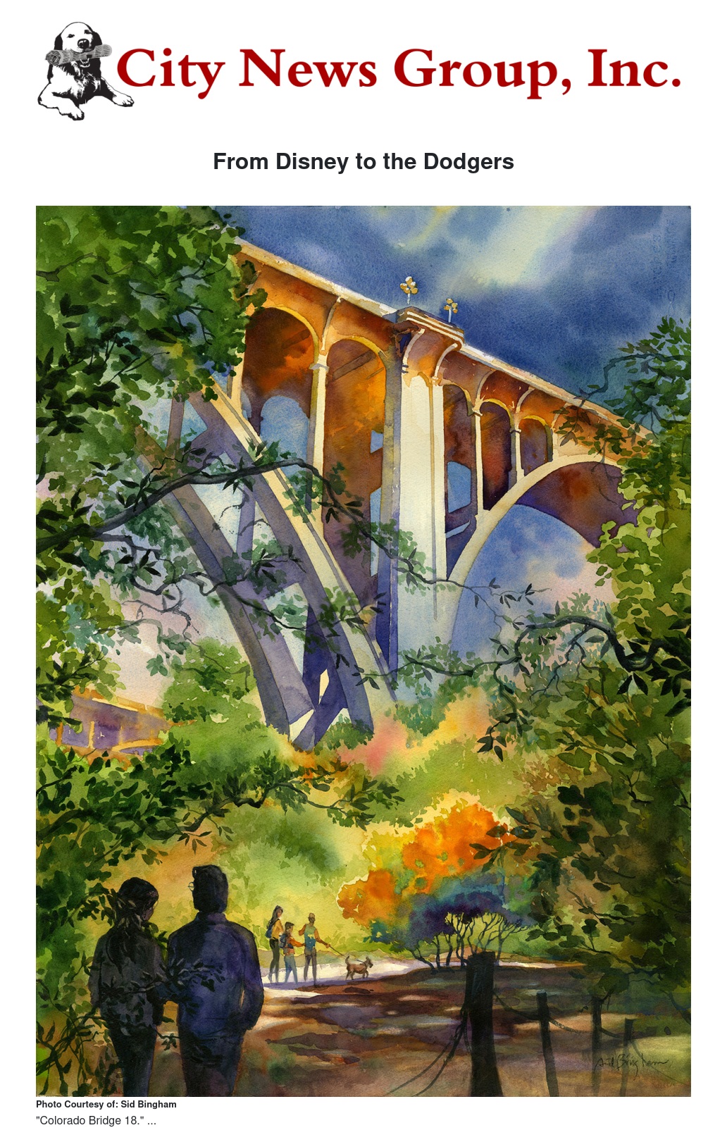 Four words pronounce the guiding principles of watercolor artist Sid Bingham, and perhaps explain the breadth of a career as artist, illustrator, designer, and art director. Love and respect for his medium explain its depth. Bingham’s satisfied clients range from the Disney corporation (various aspects), Universal Studios, and Royal Caribbean Cruise Line, to the Harlem Globetrotters and the LA Dodgers!