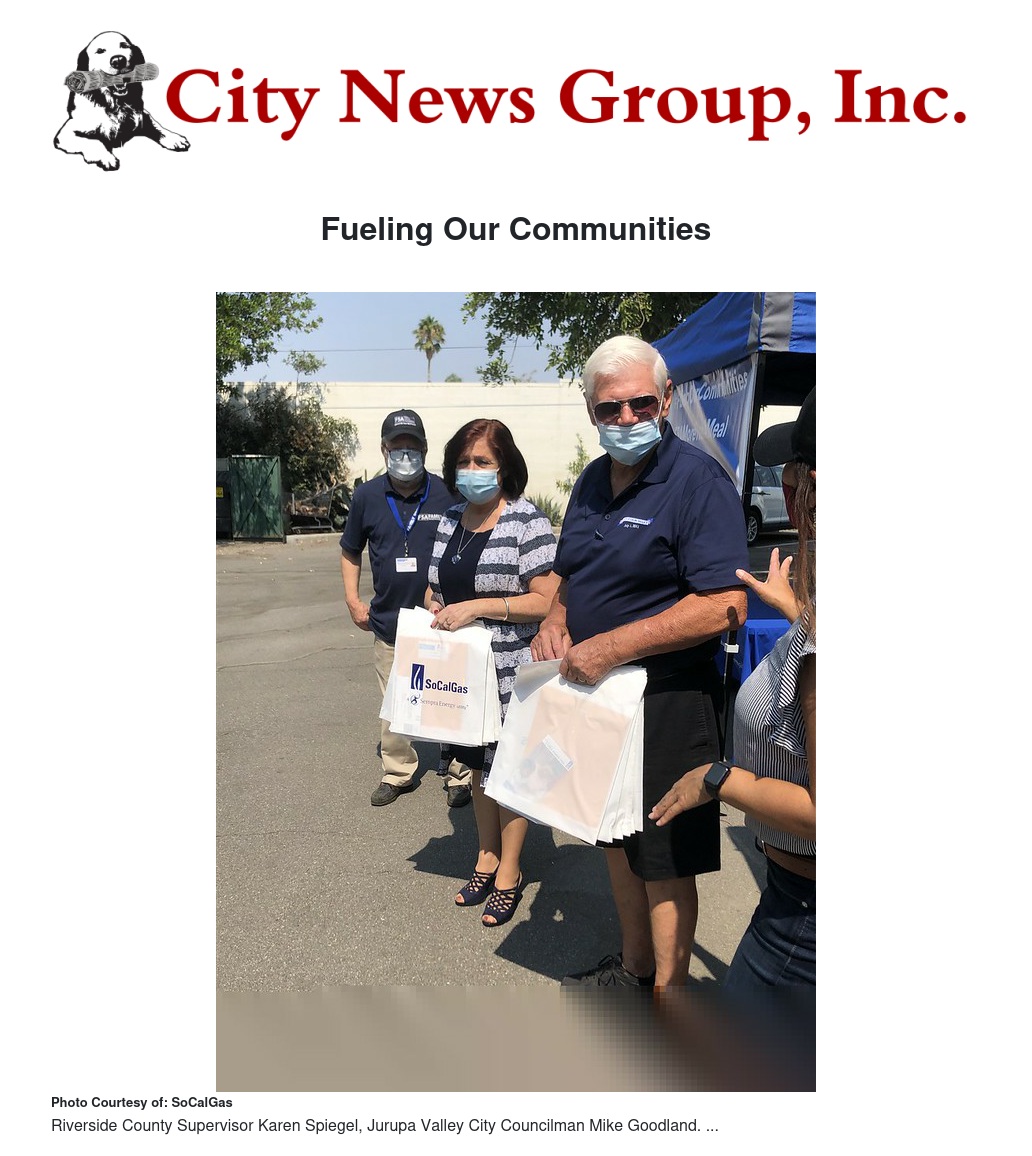 Southern California Gas Co. (SoCalGas) in conjunction with five regional charity organizations today launched the "Fueling Our Communities" program to provide free meals to individuals impacted by the COVID-19 pandemic. The program, which is funded by a $500,000 donation from SoCalGas, will provide close to 140,000 meals to 40,000 individuals from underserved communities in Tulare, Kern, Ventura, San Bernardino, Riverside and Imperial counties. The program will span over the summer season in 44 cities and will feed seniors, students, families and migrant farm workers while stimulating local small businesses.