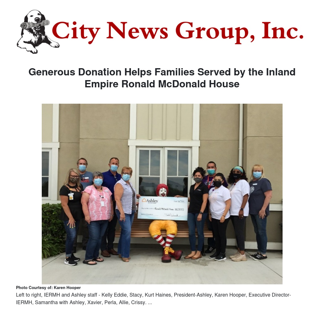 Generous Donation Helps Families Served by the Inland Empire Ronald McDonald House by Karen Hooper - City News Group, Inc.