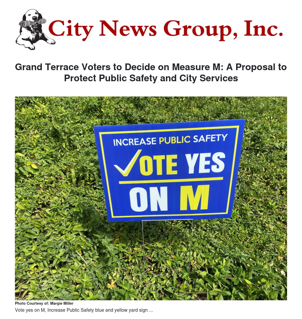 Grand Terrace Voters to Decide on Measure M: A Proposal to Protect Public Safety and City Services by Stella Pierce - City News Group, Inc.