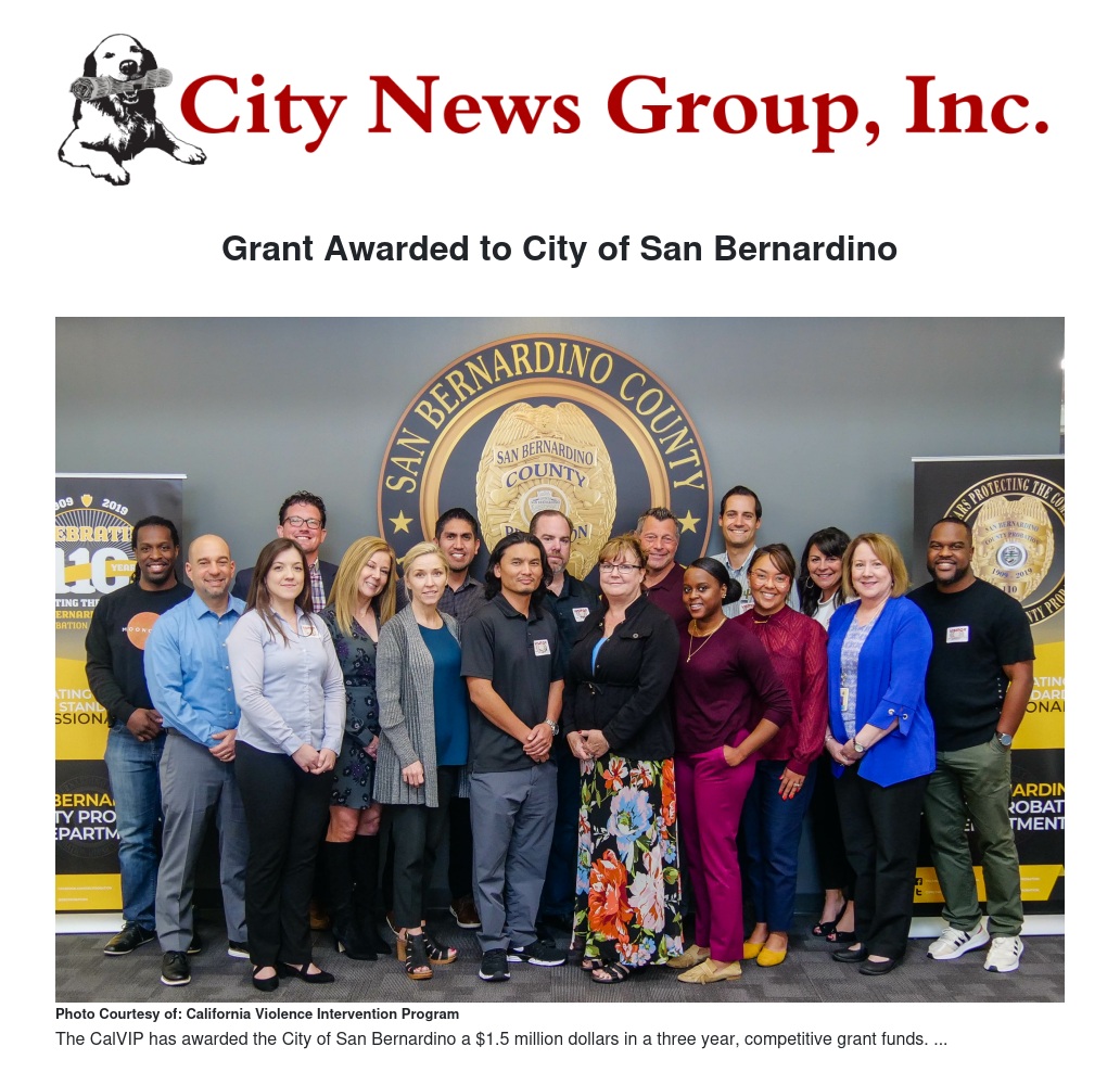 The California Board of State & Community Corrections, California Violence Intervention and Prevention Grant Program (BSCC, CalVIP) awarded the City of San Bernardino $1.5 million dollars in a three year, competitive grant funds.