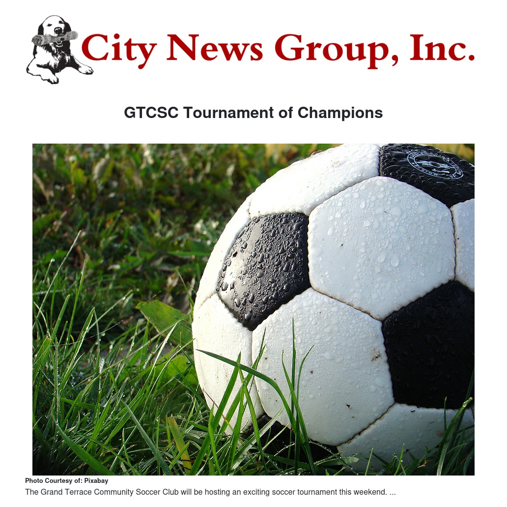 This weekend, the streets of Grand Terrace will be flooded with soccer fans and players as the Grand Terrace Community Soccer Club (GTCSC) will be hosting Cal South District 5’s Tournament of Champions.
