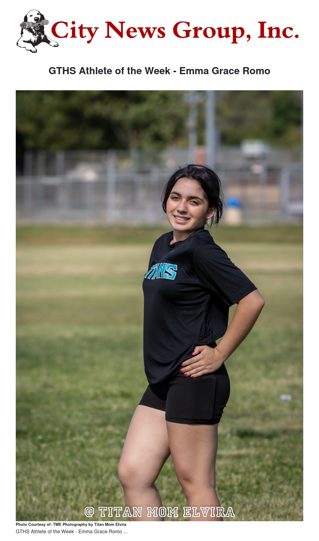GTHS Athlete of the Week - Emma Grace Romo by Titan Mom Elvira - City News Group, Inc.