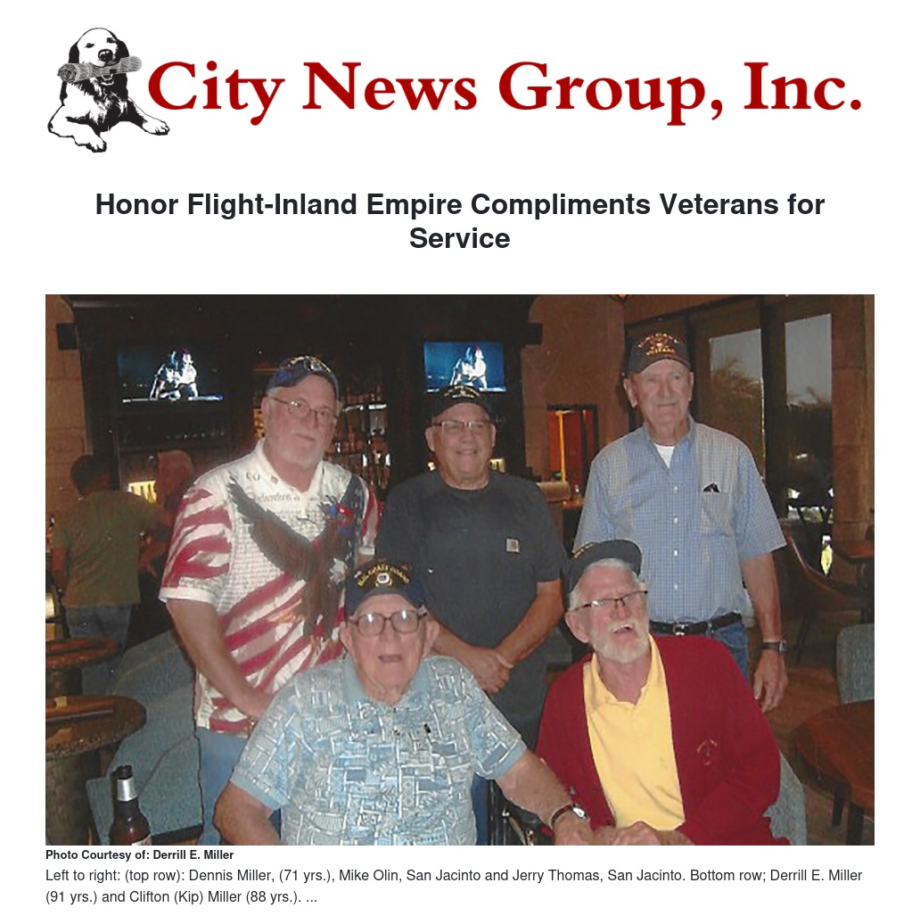 Honor Flight-Inland Empire Compliments Veterans for Service by Derrill E. Miller - City News Group, Inc.