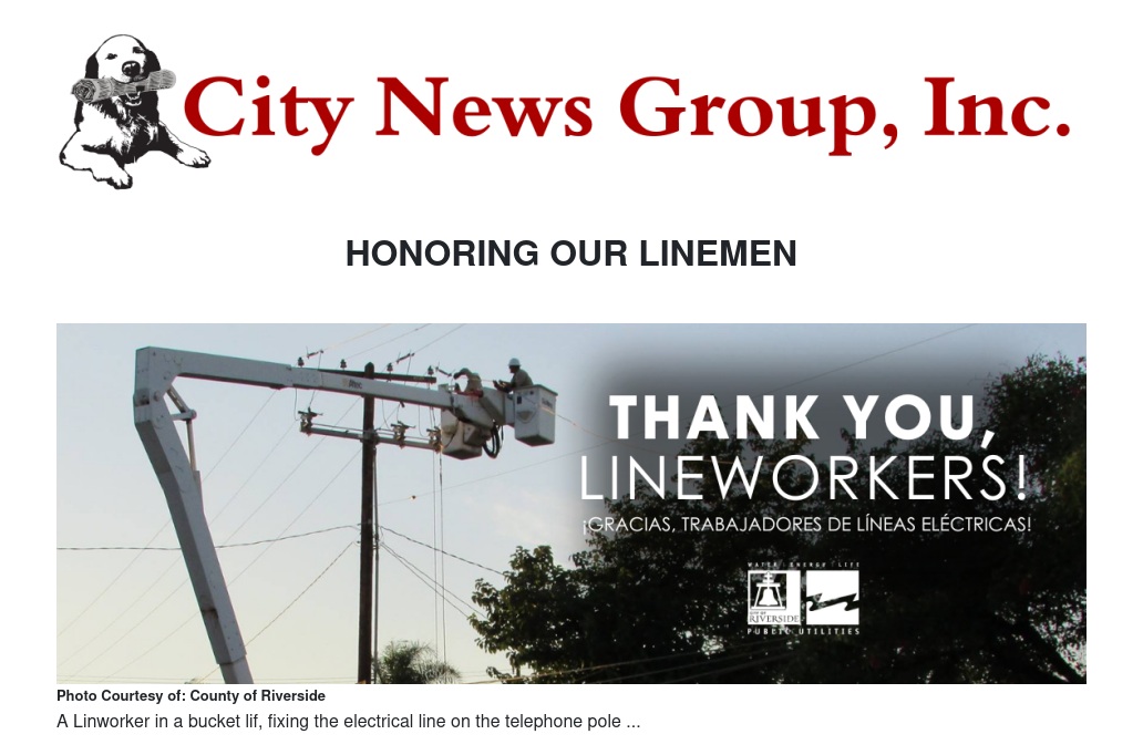 This week we celebrate National Lineman Day and recognize the dedicated line workers at Riverside Public Utilities who work tirelessly to keep our city powered. From emergency repairs to routine maintenance, their around-the-clock efforts keep Riverside running smoothly. Rain or shine, day or night—take a moment to thank the linemen who power our lives.?