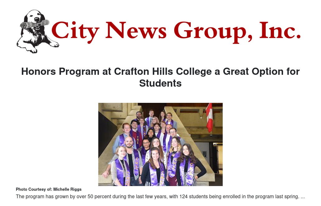 Honors Program at Crafton Hills College a Great Option for Students by Michelle Riggs - City News Group, Inc.