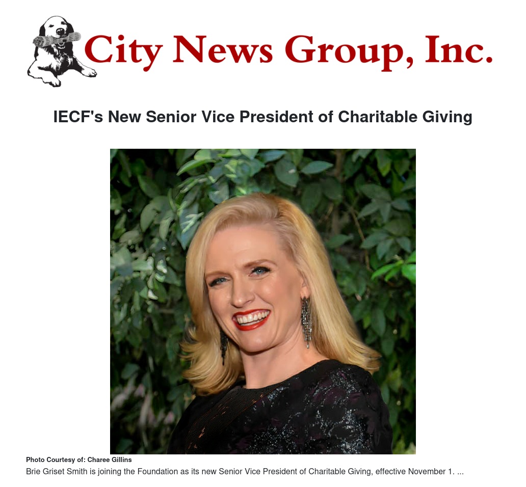 “I am proud to join Inland Empire Community Foundation (IECF) as Sr. VP of Charitable Giving to work with all who care passionately about improving our region. We invite business, non-profit, academic, government, community, and philanthropic leaders to promote opportunities to solve big problems for the IE and embrace equity as an important part of building a vibrant, prosperous, and shared future for all. Together, led by an in-depth understanding of the IE and our nonprofit sector as well as with our treasured donors, we will make a meaningful difference in the lives of our residents for generations to come,” said Brie Griset Smith, Sr. VP of Charitable Giving.