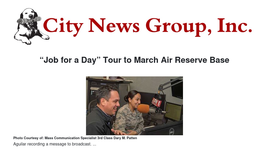 “Job for a Day” Tour to March Air Reserve Base by Parker Dorrough - City News Group, Inc.