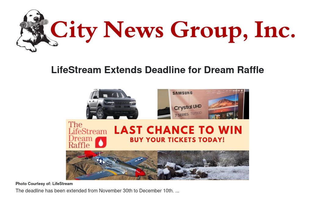LifeStream Extends Deadline for Dream Raffle by Dan Ballister - City News Group, Inc.