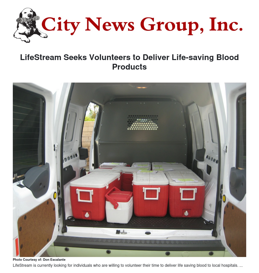 LifeStream Seeks Volunteers to Deliver Life-saving Blood Products by Don Escalante - City News Group, Inc.