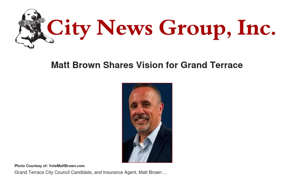 As the election approaches, Matt Brown’s message is clear: he’s here to serve the city that shaped him, drawing on decades of experience in both public service and business to lead Grand Terrace toward a prosperous and secure future.