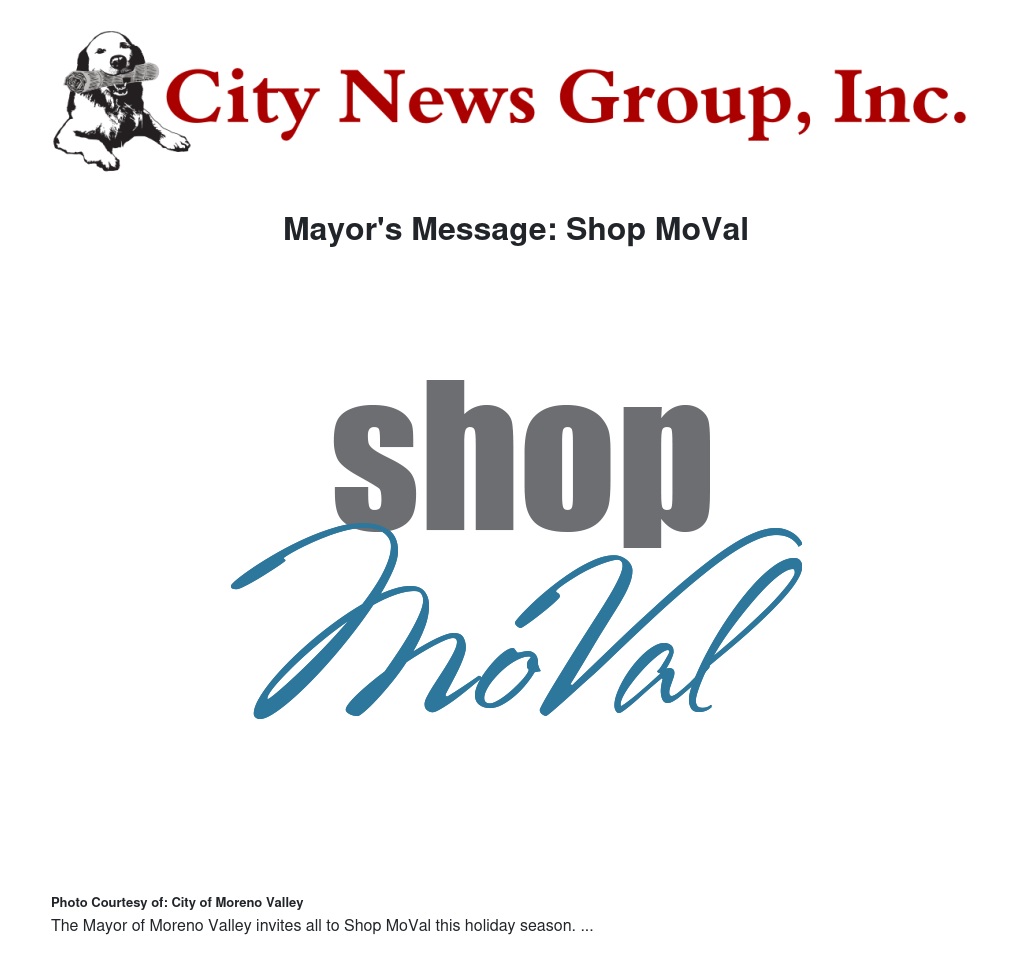 Mayor's Message: Shop MoVal by Dr. Yxstian Gutierrez - City News Group, Inc.