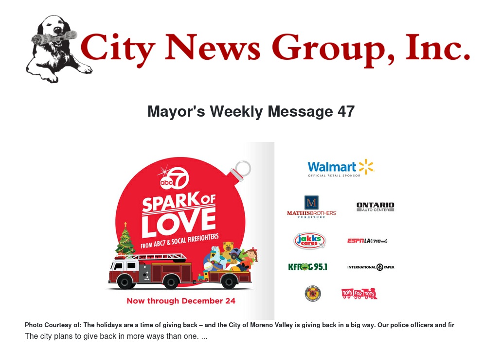 The holidays are a time of giving back – and the City of Moreno Valley is giving back in a big way.