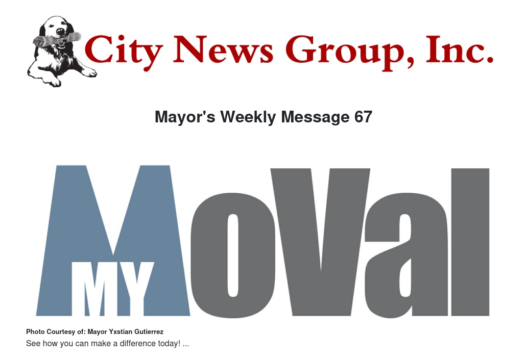 Please join me in volunteering to serve our community. Visit www.MyMoVal.org or the city’s website and apply today. You can make a world of difference!