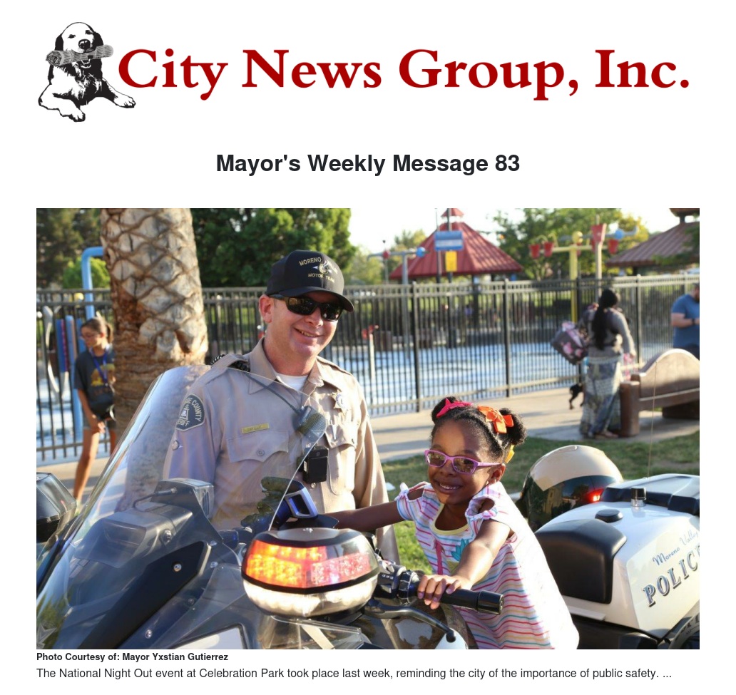 While writing this week's message regarding public safety, I learned of the shooting that killed CHP Officer Andre Moye and injured other officers in Riverside. It happened the same day an LAPD officer, another victim of gunfire, was laid to rest. It's been a difficult week for the tight-knit law enforcement community, and I know they have the sympathy and gratitude of all of us.