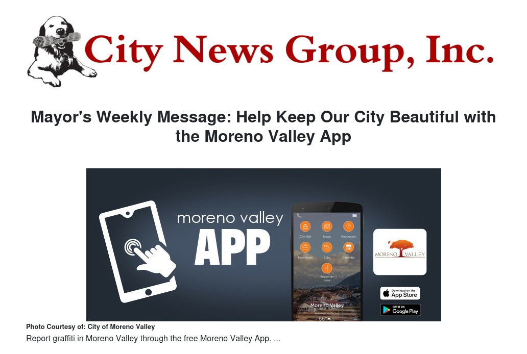 If you see any graffiti or issues such as potholes, illegal dumping, or other code violations, you can easily report them via the free Moreno Valley App.