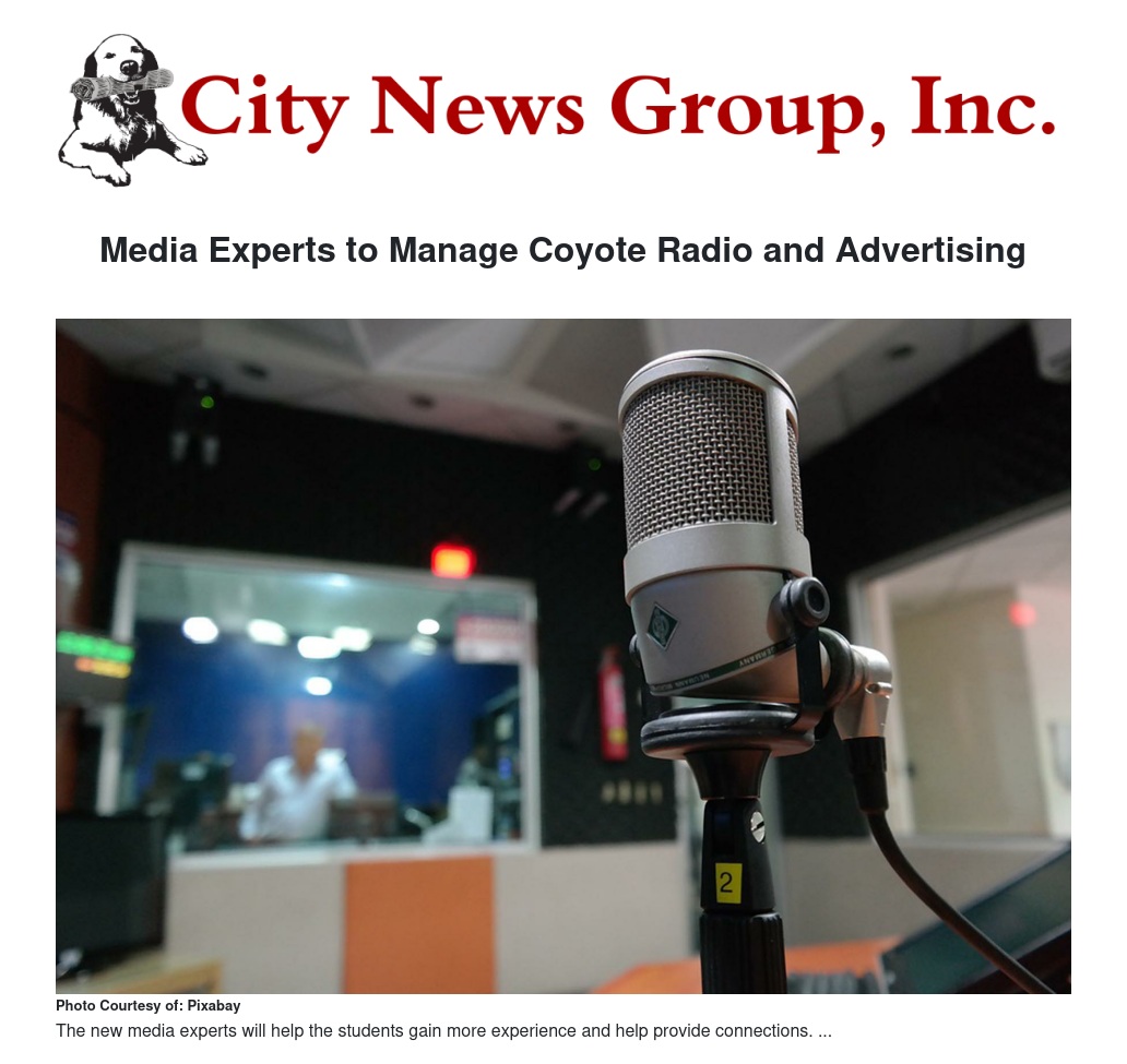 Coyote Radio and Advertising is a learning laboratory open to all students of CSUSB. The program offers hands-on instruction in radio broadcasting, digital audio and video production, social media strategy, public relations, advertising, marketing, graphic design, media programming, promotion, radio syndication, and broadcast journalism.