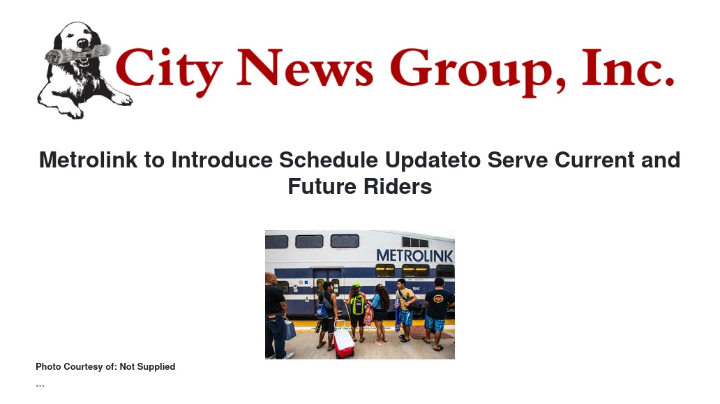 Metrolink to Introduce Schedule Updateto Serve Current and Future Riders