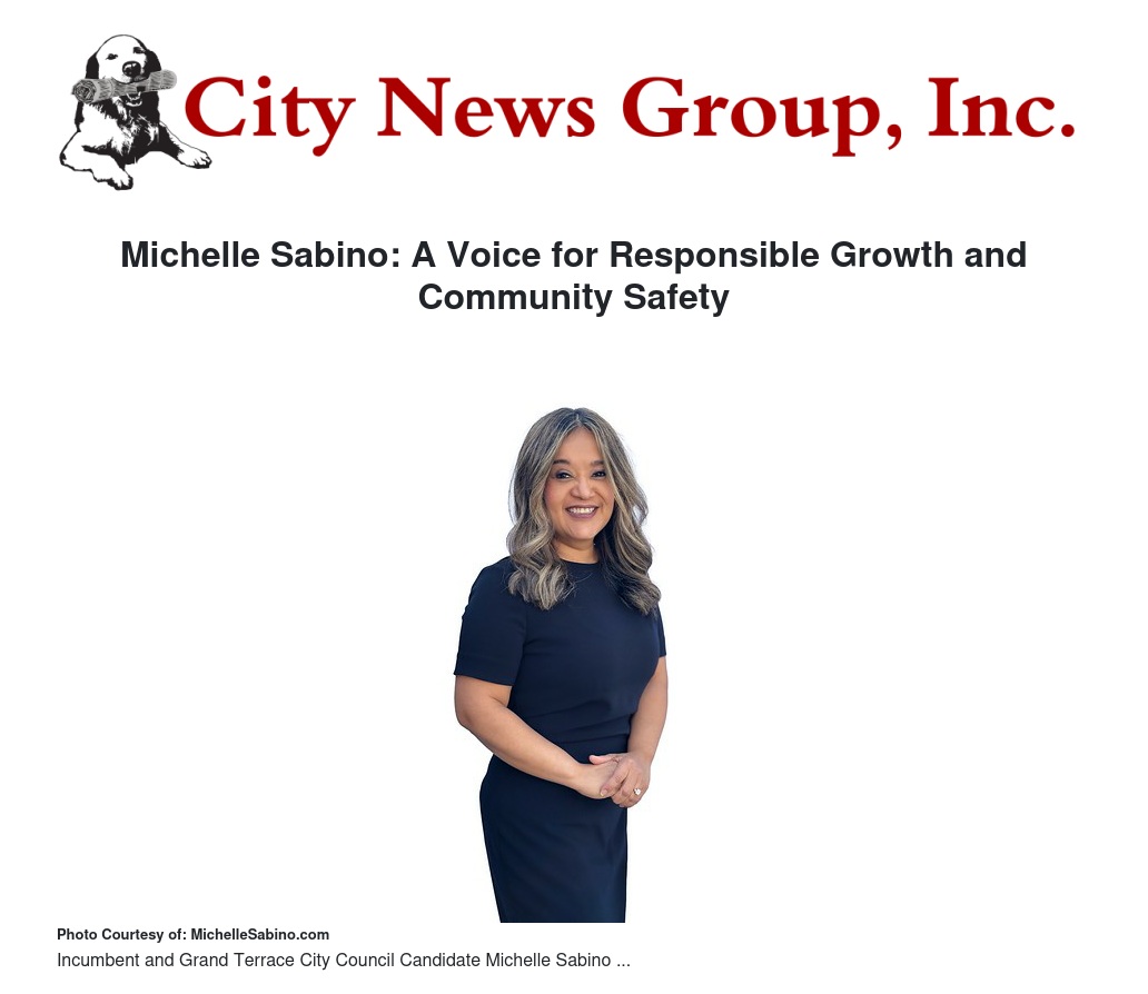 In her candidacy for city council, Michelle Sabino is committed to preserving the unique character of Grand Terrace while fostering growth and safety for all residents. Her background in working with county systems, combined with her deep understanding of local governance, positions her as a leader ready to tackle the challenges of today and tomorrow.