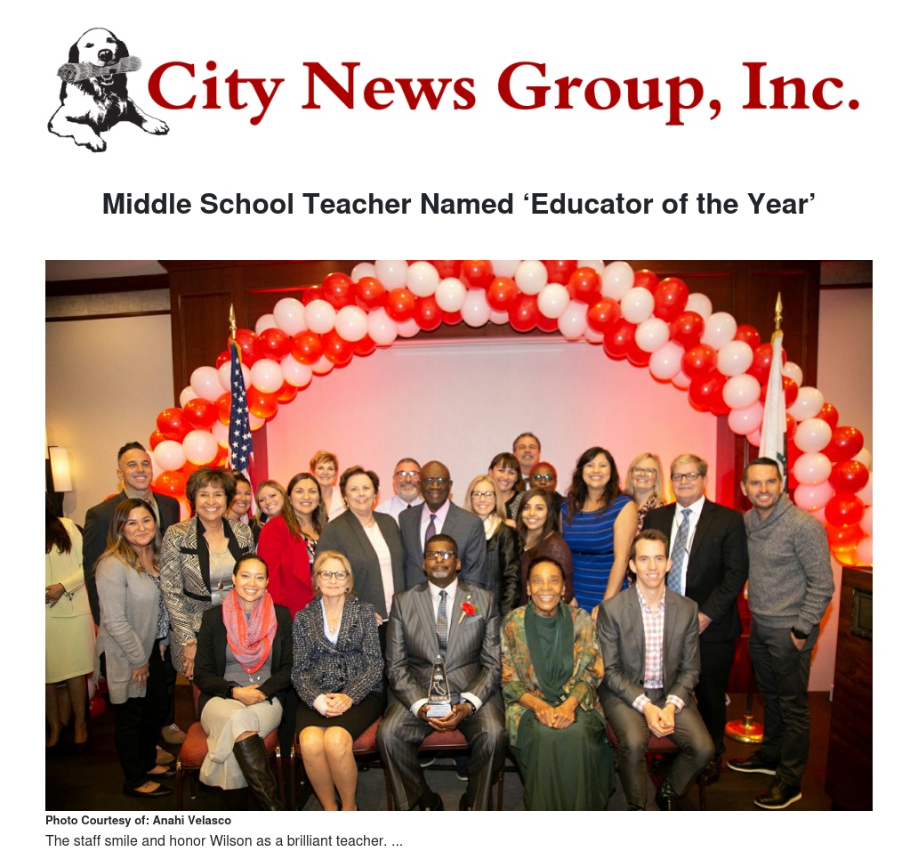 Middle School Teacher Named ‘Educator of the Year’ by Anahi Velasco - City News Group, Inc.