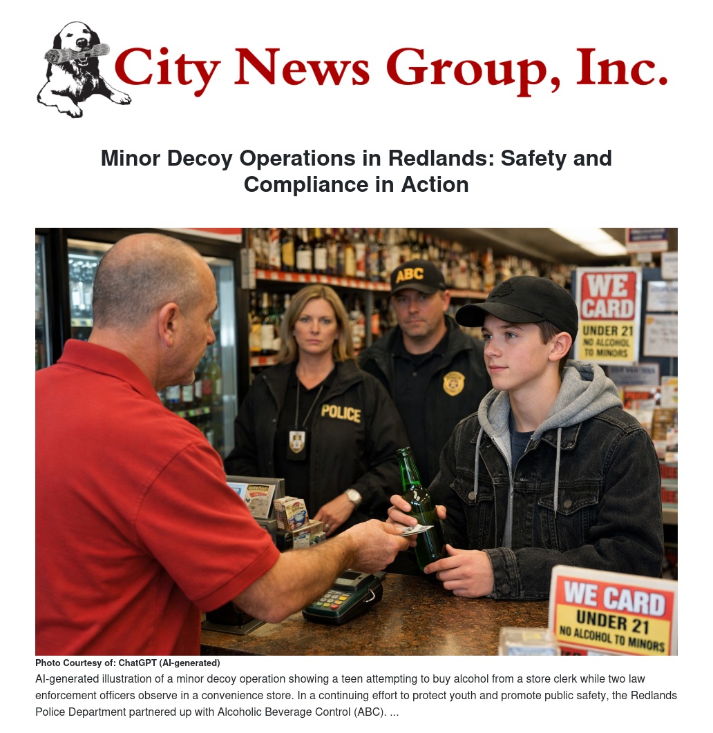 Minor Decoy Operations in Redlands: Safety and Compliance in Action by Carl Baker - City News Group, Inc.