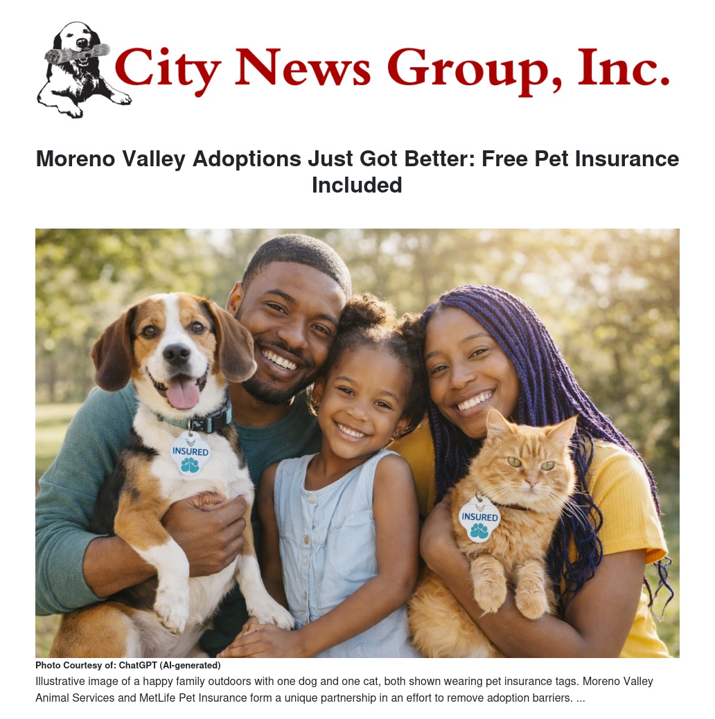 Moreno Valley Adoptions Just Got Better: Free Pet Insurance Included by Stella Price - City News Group, Inc.