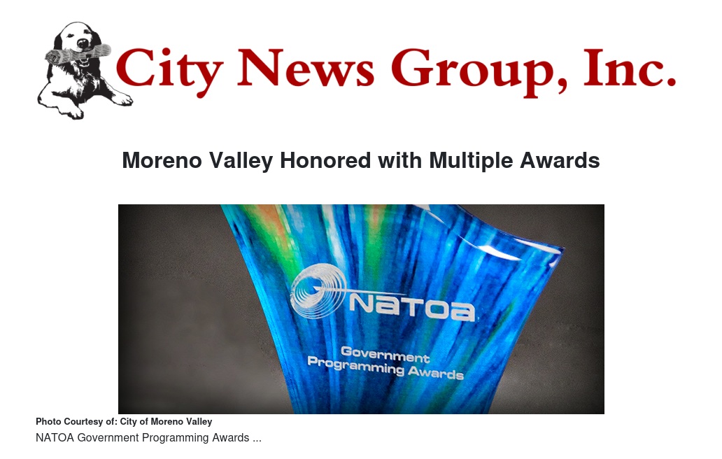 On August 21, 2025, NATOA honored Moreno Valley with top national awards in the following categories: