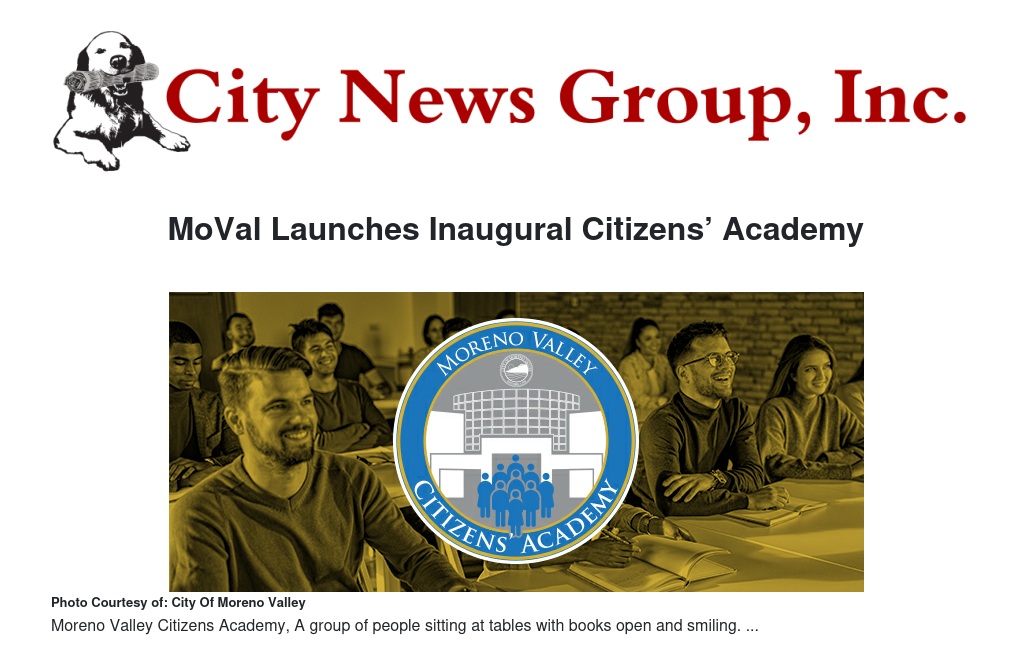 The City of Moreno Valley is launching its first-ever Citizens’ Academy, a six-week civic engagement program designed to give residents a deeper understanding of how their City operates. Approved at the City Council meeting in early September, the program will provide residents with hands-on opportunities to learn about City operations.