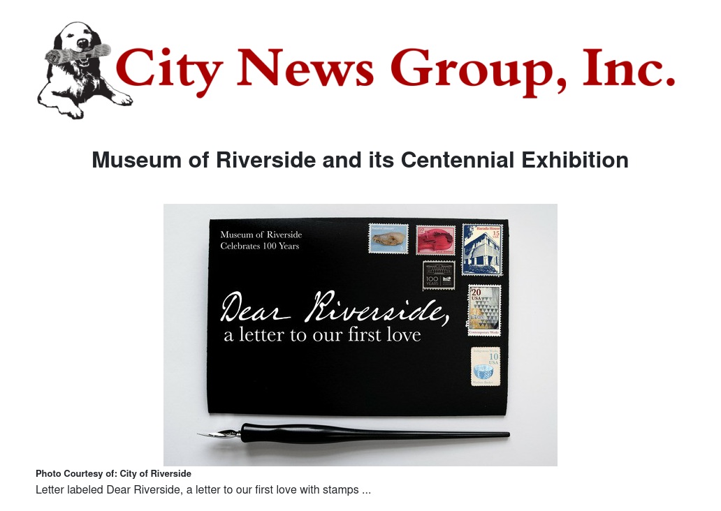 Join the Museum of Riverside at the opening of its centennial exhibition, Dear Riverside, a letter to our first love. This landmark exhibition, 100 years in the making, will be on view from July 25, 2024, to January 5, 2025, at the Center for Social Justice & Civil Liberties (CSJ&CL). The opening reception, free and open to the public, will take place on July 25, 2024, from 5:30 p.m. to 7:30 p.m. The event will feature a blessing by Michael Madrigal and bird singing by CAHUILLA BIRD inside the CSJ&CL gallery, with remarks by Mayor Patricia Lock Dawson, City Manager Mike Futrell, and other community leaders scheduled for 6:00 p.m. at the adjacent Riverside College Culinary Arts Academy Restaurant.
