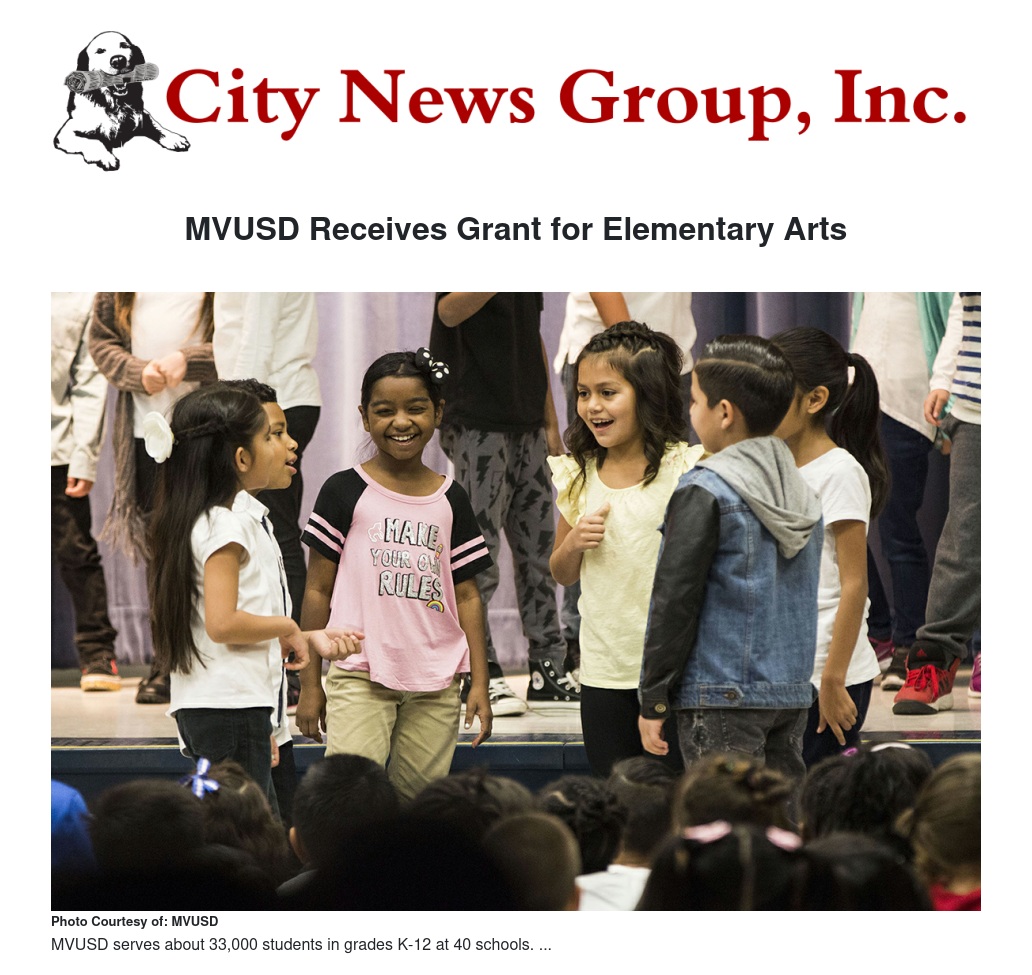 MVUSD Receives Grant for Elementary Arts by Christopher Weddle - City News Group, Inc.