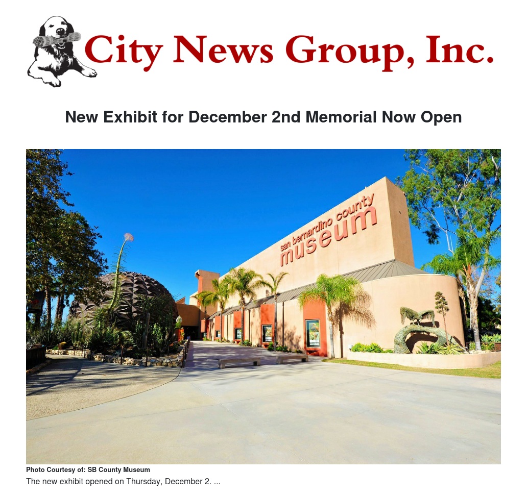 A special exhibit about the creation of the upcoming December 2nd “Curtain of Courage” Memorial opened at 1 p.m. on Thursday, Dec. 2 at the San Bernardino County Museum in Redlands.